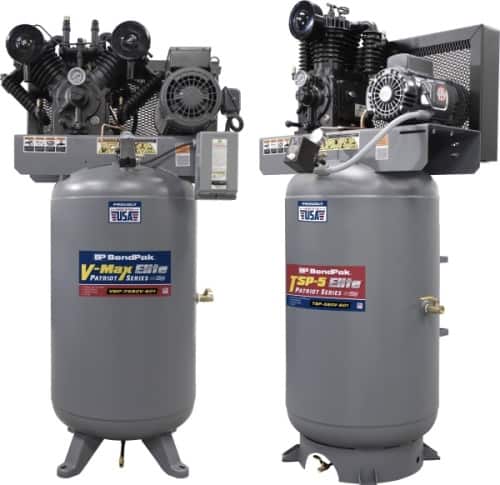Each unit features an energy-efficient motor and large reciprocating cylinder heads running at slower speeds to provide powerful, cool, compressed air.