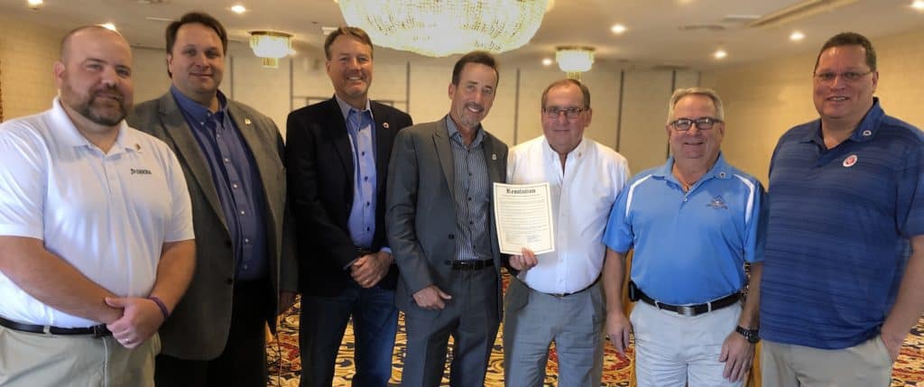 FROM LEFT: Buck Gasner, DEKRA North America, Doug Brown, Vehicle Service Group, Stet Schanze, Gray Manufacturing Company, Jeff Kritzer, BendPak, Howard Yeo, TLS Lifts, Stan Poweska, PKS Lifts, and R.W. “Bob” O’Gorman, ALI.