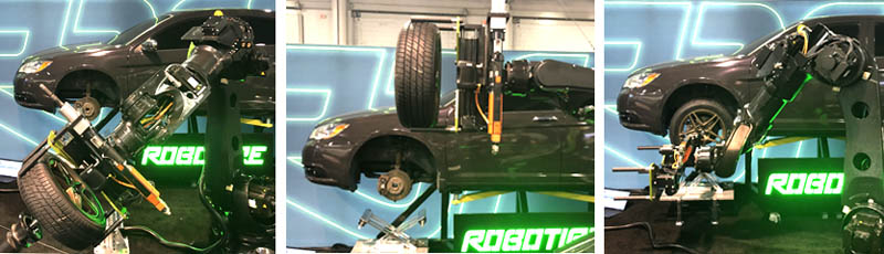 RoboTire’s patented system uses robots to change tires in a fraction of the time human operators can.