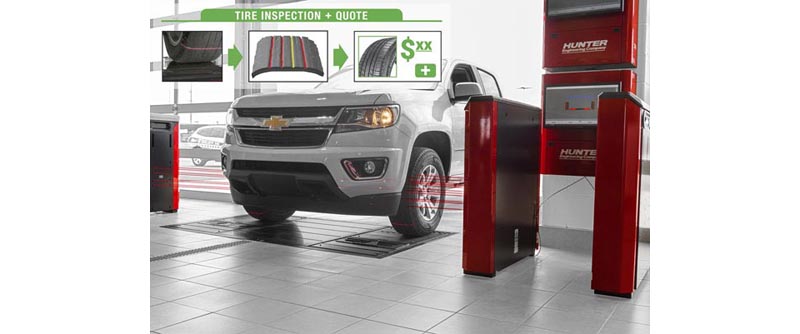 Service advisors can click to quote the tire replacement opportunities identified by Hunter Engineering's inspection system.