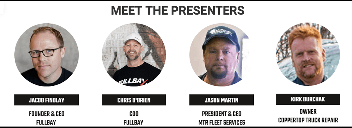 Join Fullbay’s CEO and founder Jacob Findlay and COO Chris O’Brien, as they discuss mobile repair with industry veterans Kirk Burchak, owner of Coppertop Truck Repair, and Jason Martin, president and CEO of MTR Fleet Services. In this roundtable discussion attendees will learn:
