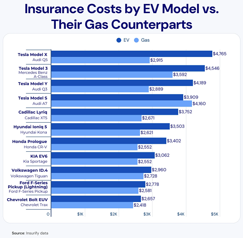 - Cost difference of insuring an EV vs. a gas-powered car: 87%