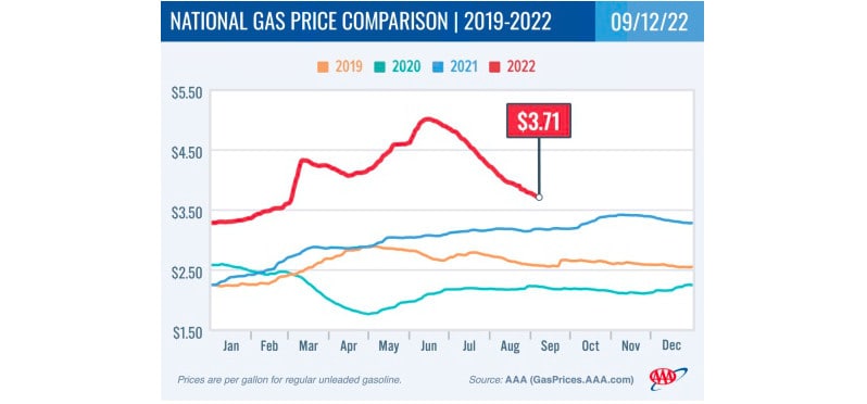 “Less expensive oil usually leads to less expensive gas for drivers,” said Andrew Gross, AAA spokesperson. “This trend has helped pump prices fall steadily for three straight months and, with fall approaching, more markets could soon see prices below $3 per gallon.”