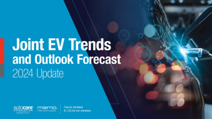 Bethesda Md. and Research Triangle Park, N.C.—MEMA Aftermarket Suppliers and the Auto Care Association have released the 2024 Joint EV Trends and Outlook Forecast, providing insights into the evolving electric vehicle landscape to help the aftermarket industry navigate this dynamic sector.
