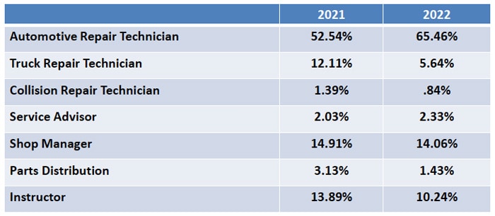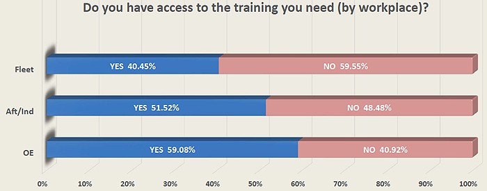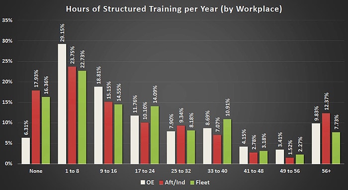 The ATMC training benchmarks survey is conducted annually within the automotive and heavy-duty vehicle service and repair industry. This year’s participation included 3,343 respondents. The survey is designed to establish a series of metrics to help the industry recognize trends, provide a comparison standard and align the offerings of training providers with the needs of training consumers.