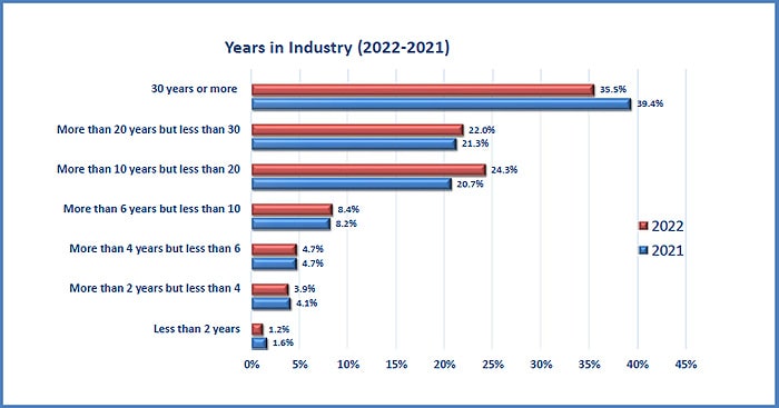 Questions answered: What best describes your job? What is your age? What is your industry experience? Did you have vo-tech training? Who pays for training? What training content do you need?