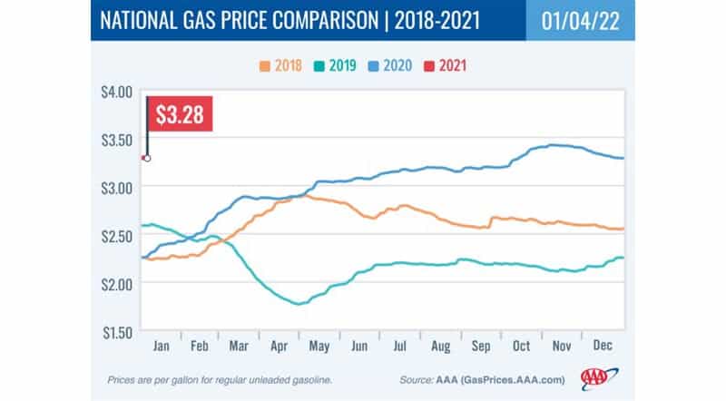 Gasoline prices barely budged over the past week, as fears of an omicron-driven economic “soft shutdown” dominate the news.