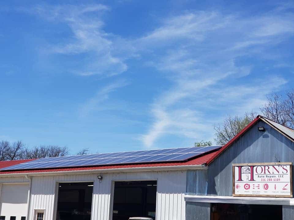 Newton, Kan.—Horn’s Auto Repair, in rural Newton, Kan., started out 12 years ago in a 30-foot by 30-foot shop that had no lift, office or wiring that was up to code. Today it has four bays, three indoor lifts, and a spacious office — all completely run on solar power.