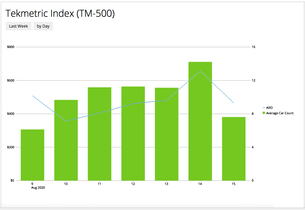 Houston—The Tekmetric Index (TM-500) collects data from 500 auto repair shops, a sample of Tekmetric users across the United States. TM-500 monitors economical trends to show how the industry is performing as a whole. Below are last week’s trends in car counts and AROs by region.