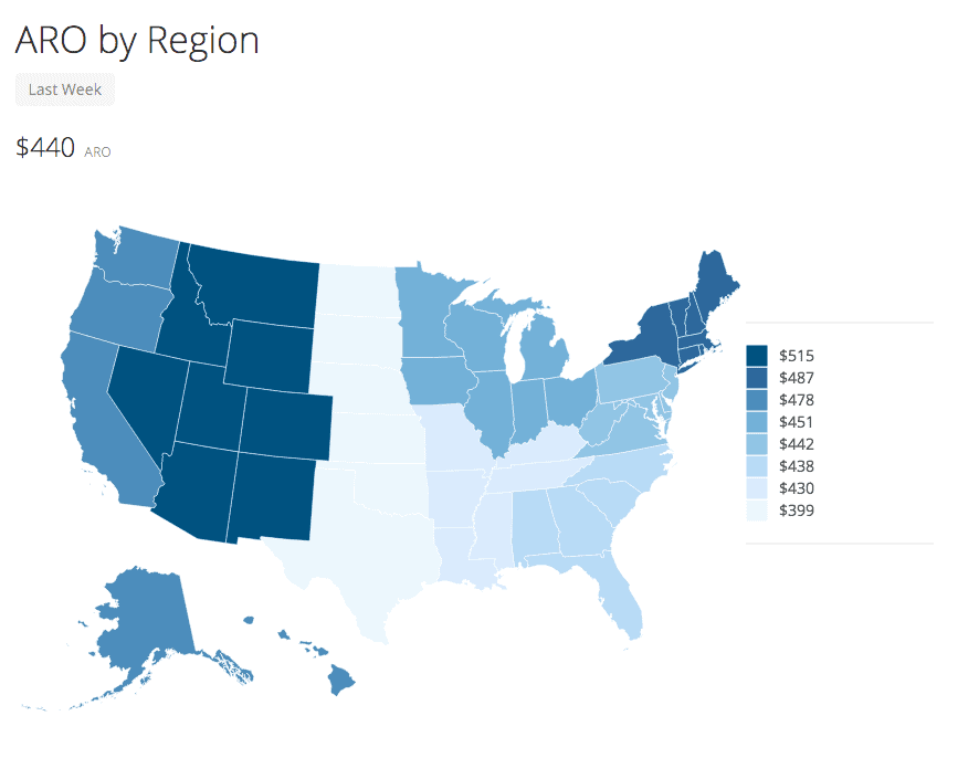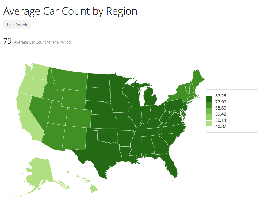 Houston—The Tekmetric Index (TM-500) collects data from 500 auto repair shops, a sample of Tekmetric users across the United States. TM-500 monitors economical trends to show how the industry is performing as a whole. Below are last week’s trends in car counts and AROs by region.