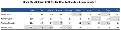 County Markets: Toyota market share exceeded 18% in Western Slope region