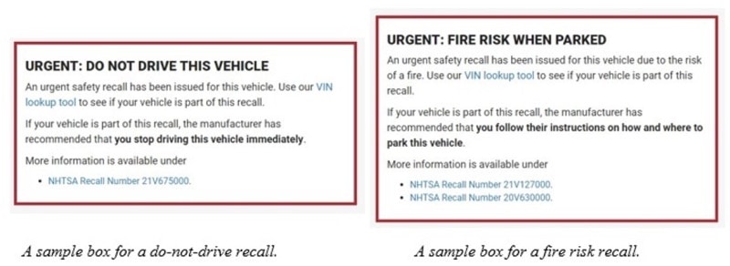 New tool quickly identifies vehicles that have an urgent safety recall where the vehicle should not be driven or parked inside until fixed.
